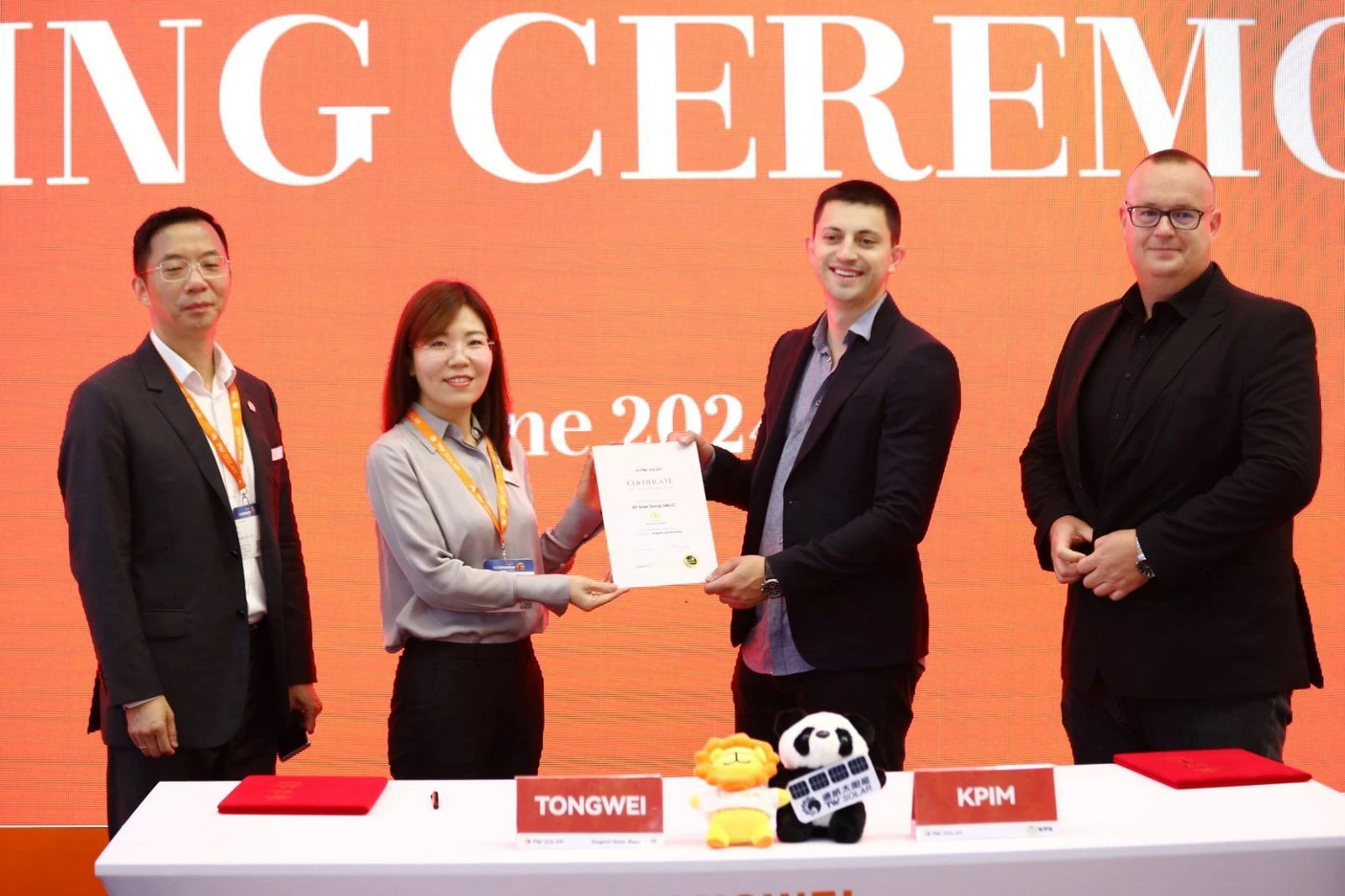 Cu entuziasm anunțăm o realizare importantă obținută săptămâna trecută la Intersolar Munich: ceremonia oficială de semnare cu partenerii noștri de la Tongwei Solar. Fiind o companie de top la nivel global în domeniul fotovoltaicelor și furnizorul numărul 1 de celule solare și polisiliciu fotovoltaic, Tongwei Solar aduce expertiză valoroasă și inovație în parteneriatul nostru.