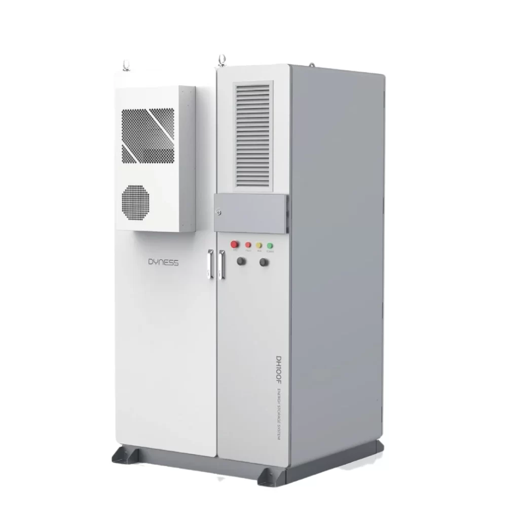 Seria Dyness DH100F este un sistem all-in-one, multifuncțional, cu suport integrat pentru panouri fotovoltaice și generatoare, permițând comutarea între alimentarea din rețea și modul off-grid. Oferă opțiuni de capacitate autonomă între 71 și 100 kWh, cu baterii LFP (litiu-fier-fosfat) de 280 Ah și densitate energetică ridicată. Include un sistem inteligent de management al energiei (EMS) și un design modular care optimizează costurile de infrastructură.